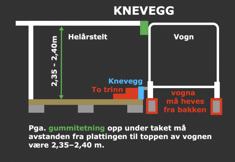 -Ved valg av tak over vogna inkluderes ekstra høyde på alle vegger i helårsteltet.